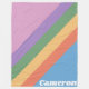Nostalgisches geometrisches Design mit Retro-Regenbogen-Diagonalstreifen in Rosa, lila, grün, gelb, orange und blau, personalisiert mit Ihrem Namen.