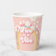Fünf ist ein Vibe! Retro inspirierte Papiertassen zum 5. Geburtstag mit Schriftart und Farben im Stil der 70er Jahre, Regenbogen und Gänseblümchen in Rosa