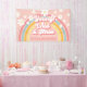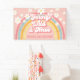 Young Wild and Three! Retro inspirierte Banner zum 3. Geburtstag mit Schriftart und Farben im Stil der 70er Jahre, Regenbogen und Gänsebläschen in Rosa