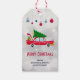 Retro Red Car mit einem Weihnachtsbaum Geschenkanhänger
