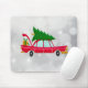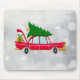 Retro Red Car mit einem Weihnachtsbaum Mousepad