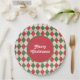 Feierlich und rustikal aussehend Vintages harlequin Diamantmuster im Urlaub rot und grün auf Not / alt Hintergrund. Anpassbarer froher Weihnachtstext im mittleren Kreis
