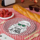 Retro Red Pink Checkered Santa Claus Christmas Paper Plates.