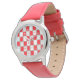Cette Retro Red and White Starbursts Kid's Watch est tellement adorable l'âge de l'espace que vous ne serez pas en mesure de contenir votre enthousiasme. Et pourquoi voudriez-vous ? Ce design d'inspiration moderne des années 60 est orné d'un arrière - plan gris bruyant et de rangées de rectangles parfaitement imparfaits dans un gris rouge, blanc et colombe. Les étoiles kitschy blanches et rouges sont placées dans des rectangles choisis au hasard. Ce motif mod vous donnera l'impression de sauter dans une machine à remonter le temps et de régler le cadran de façon irrémédiablement vintage !