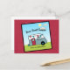 Senden Sie einen Gruß von der Straße mit diesem Retro-Camper Thema Postkarte. Bild eines niedlichen Vintagen Campers in rot und aquamarin für Sie, um mit Ihrem eigenen Text zu personalisieren.