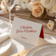 Diese Platzkarte mit spielerischem Rot-Weiß-Stil präsentiert delikate Designelemente, die ein nostalgisches Retro-Ambiente hervorrufen. Seine zeitlose Ästhetik verbindet Eleganz mit Launen und bietet eine raffinierte Art, Ihre Gäste willkommen zu heißen. Diese Platzkarte ist perfekt für jedes Hochzeitsthema geeignet und hilft nicht nur bei der Organisation Ihrer Sitzgelegenheiten, sondern sorgt auch für einen persönlichen und stilvollen Flair. Pair es mit anderen koordinierenden Gegenständen aus der Sammlung für einen kompletten und einheitlichen Hochzeitslook.