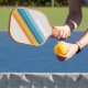Retro Rainbow Stripes Pickleball Paddle, wo Vintager Charme auf lebendiges Spiel trifft! Inspiriert durch die ikonische Regenbogenästhetik der Vergangenheit, bringt dieses Paddel einen farbenfrohen und nostalgischen Strom in Ihr Pickleball-Spiel. Dieses atemberaubende Design mit Retro-Regenbogenstreifen ist ein visueller Genuss, der sich auf jedem Pickleball-Platz bemerkbar macht. Die lebhaften Farben rufen ein Gefühl von Freude und Verspieltheit hervor, das auf den sorglosen Geist der Retro-Ära zurückgeht.