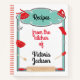 Spaß und bunt Retro Backen und Kochen Elemente Rezept Kochbuch. Vintage Schürze, Mixer, Messlöffel, Ofen Mitt, Mischschüssel, Spatel, Holzlöffel und rollendes Button mit den Farben Rot, Weiß und Wasser. Handgezeichnet von McBooboos