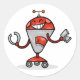 Retro Robot Cartoon Fun Red und Silver AI Bot Runder Aufkleber