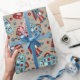 Retro Roboter Blau und Rot Gemustert Geschenkpapier