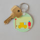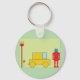 Ein Retro-Roboter, der neben einem Gelbwagen stehend ist. Dieses Design sieht auf diesem Schlüsselanhänger wirklich effektiv aus