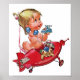 Retro Rocket Girl ist ein Bild eines bezaubernden Kleinkind, Betsey Bell. Sie spricht auf ihrem niedlichen blauen Telefon neben ihrem Raketenspielzeug und Teddybär.