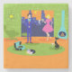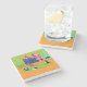 Dieser Retro Romantische Abend Couple Stone Untersetzer sieht aus wie eine Szene aus einer romantischen Comedy aus den 1960er Jahren. Das minimalistische Design verfügt über ein attraktives Cartoon-Paar im Wohnzimmer einer modernen, urbanen Wohnung Mitte des Jahrhunderts. Der Saal ist mit einer grünen Steinwand versehen, die mit einer Fensterfront von Boden zu Decke und einem Ausblick versehen ist. Durch das Fenster können wir die blaue Silhouette einer großen Skyline sehen. Ein Halbmond ist nur im orangefarbenen Sonnenuntergang zu sehen. Die Einrichtung des Zimmers umfasst einen grünen Loungestuhl mit passendem Fußbodenbelag, eine gelbe, helle Einrichtung mit Sputnik und einen türkisfarbenen Kamin in Form eines Kamins, der mit einem rotierenden Kamin ausgestattet ist. In der Mitte des orangefarbenen Bodens befindet sich ein runder, grüner Teppich. Ein tragbarer, türkisfarbener und schwarzer Plattenspieler wird auf den Teppich gelegt. Neben dem Plattenspieler kann man einen Schallplatte sehen, der aus einem kitschigen Album-Cover kommt. Auch auf dem Teppich ist eine schlaue, schwarze Katze mit einem aquamarinen Kragen. Dieser extravagante Felin sitzt vor einem Martini-Glas. Mit dieser Szene haben wir ein sehr anspruchsvolles Paar. Es gibt einen Suave Mann mit einem blauen Anzug, hellblauem Shirt und roter Krawatte. Der große, dunkle und gut aussehende Mann genießt die Begleitung einer eleganten Blondine. Die hübsche Dame trägt ein heißes rosa Kleid mit einem formschönen Bodice und einem ausgeprägten Rock. Sie besitzen jeweils ein Kristallglas mit schwimmendem Olivenöl.Prost! Hier ist der perfekte Abend bei Zuhause!