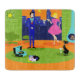 Dieses Retro romantische Abends-Paar-Ausschnitt-Brett sieht wie eine Szene aus einer Sechzigerjahre romantischen Komödie heraus aus. Die unbedeutenden Ausrüstungsbeschreibungen ein attraktives Cartoonpaar im Wohnzimmer einer Mitte des Jahrhunderts modern, städtische Wohnung. Der Raum kennzeichnet vorstehend ein Grün, Steinwand mit einem Boden zum Deckenfenster mit einer Ansicht. Durch das Fenster können wir die blaue Silhouette eines großen Stadt Skyline sehen. Ein sichelförmiger Mond ist im orange Himmel des Sonnenuntergangs gerade sichtbar. Die Einrichtungsgegenstände im Raum schließen ein Grün, Klubsessel mit zusammenpassendem Schemel, ein Gelb, Sputnik-Leuchte und einen Türkis, den kegelförmigen Kamin mit ein, der mit Brüllenfeuer komplett ist. In der Mitte des orange Bodenbelags, gibt es eine runde, grüne Noppewolldecke. Ein Portable, ein Türkis und ein schwarzer Rekordspieler wird auf die Wolldecke gesetzt. Nahe bei dem Rekordspieler kann eine Vinylaufzeichnung gesehenes Stoßen aus einer kitschy Albumabdeckung heraus sein. Auch auf der Wolldecke, gibt es eine glatte, schwarze Katze, die einen aquamarinen Kragen trägt. Dieses extravagante katzenartige sitzt vor einem Martini-Glas. Diese Szene genießend, haben wir ein sehr hoch entwickeltes Paar. Es gibt einen höflichen Mann, der einen blauen Anzug, ein hellblaues Shirt und eine rote Krawatte trägt. Das hohe, die Dunkelheit und der gutaussehende Mann genießt die Firma einer eleganten blonden Frau. Die reizende Dame trägt ein Pinkkleid mit einem passenden Mieder der Form und einem erweiterten Rock. Sie sind jede Holding ein Kristallmartini-Glas mit einer sich hin- und herbewegenden Olive. Beifall! Ist hier zum perfekten Abend zu Hause!