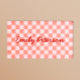 Diese im Retro-Stil gehaltene Visitenkarte weist einen rosa, karierten Hintergrund und einen kontrastierenden roten Schriftart auf. Fügen Sie Ihre Firmeninformationen, Social Media oder Website auf der Rückseite der Karte hinzu.
