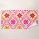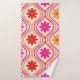 Bringen Sie kühnen Vintagen Flair in Ihr Bad mit diesem Badehandtuch-Set mit Retro-Orange, Rosa und Rot-Blume auf Vintag ovalen ovalen Formen.