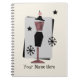 Ein gewundenes Notizbuch, das eine Illustration eines retro inspirierten Kleiderformmannequins mit einem rosa und schwarzen Polkapunkt-Farbentwurf kennzeichnet. Personifizieren Sie mit Ihrem Namen.
