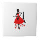 Retro Rote schwarze Silhouette mit Eiffelturm Fliese