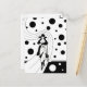 Vintage Illustration Deko Design mit einer schicken Dame in einem Hut und Mantel gekleidet und mit einer Handtasche. Die Frau läuft auf einem schwimmenden Pfad. Schwarze Polka-Punkte, Kreise oder Blasen treiben herum. Der Hintergrund ist klar, sodass Sie jede Farbe hinzufügen können, die Sie gewollt haben! Klicken Sie auf die Schaltfläche "Anpassen"!