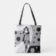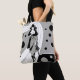 Schöne Tote-Taschen im Überdruck! Erhältlich in zwei Stilen und zwei Größen! Vintage Illustration Deko Design mit einer schicken Dame in einem Hut und Mantel gekleidet und mit einer Handtasche. Die Frau läuft auf einem schwimmenden Pfad. Schwarze Polka-Punkte, Kreise oder Blasen treiben herum. Der Hintergrund ist klar, sodass Sie jede Farbe hinzufügen können, die Sie gewollt haben! Klicken Sie auf die Schaltfläche "Anpassen"!