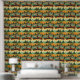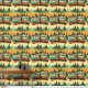 Orangefarbener, blau und grün Vintager Retro-Camper im Wald. Coole Stock und Abziehtapete für diejenigen, die Liebe Camping.