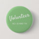Retro Sali grüne "Volunteer" Buttons für Freiwillige, Lehrer, Führer, Veranstalter für besondere Veranstaltungen wie Hochzeiten, Kunsthandwerksmessen, Zuhause & Garden Shows, karitative Veranstaltungen, Business und Firmenveranstaltungen. Retrostil, Typografie mit weißen Schriftzeichen und Schriftart mit weißem San für den Namen des Freiwilligen.