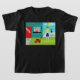 Willkommen zu den Vororten! Dieser Retro Samstag Morgen T - Shirt kennzeichnet ein attraktives unbedeutendes Cartoonpaar in ihrer kleinen Ecke des Paradieses. Vom Fenster eines Türkises und aquamarinen des Ziegelsteinhauses, können wir Frau Homemaker sehen. Der schöne Redhead trägt einen Pinkkittel. Sie hält einen Krug frisch zusammengedrückte Limonade in einer Hand. Auf dem Windowsill vor ihr, gibt es ein kochend heißes, selbst gemacht, das überstiegene Gitter, Fruchttorte in einer grünen Tortenplatte. Auf dem Gehweg vor der roten Tür zum Zuhause, ist gerollt herauf Samstag Morgen Zeitung wartete gelesen zu werden. Herr Man des Hauses ist auf dem üppigen grünen Rasen stehend. Er trägt Kurzschlüsse eines Blaus und ein gelbes Shirt, das die sonnige Einteilung seiner Ehefrau zusammenbringt. Er ist hinter einem roten Rasenmäher stehend. Wir können sehen, dass er bereits einen Streifen des Grases gemäht hat, aber an diesem Punkt es schwierig ist, zu sagen, wenn er schwer arbeitet oder schwer arbeitet. Das Mähen scheint, an einem Stillstand zu sein, während er ein scharfes Glas Limonade genießt. Ah, erneuernd! Neben dem Haus wird die katzenartige Familie auf einem weißen Palisadenzaun gehockt. Schneeball, die ironisch genannte schwarze Katze, schaut unten auf ihren loyalen Themen und den orange und gelben Blumen, die die Zaunreihe einfassen. Die gelbe Sonne späht von hinten flaumige, hellblaue Wolken. Der Himmel ist der Schatten von Aqua aufgehoben für Hometown, USA in kitschy, moderne Grafik der Mitte des Jahrhunderts.