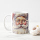 Eine Tasse mit einer Vintagen Stildarstellung. Ein Portrait des Weihnachtsmannes mit seinem großen weißen Bart, der seine klassische rote Weihnachtsmannmütze trägt.