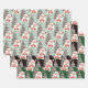 Ein niedlicher Vintager Weihnachtsmann zwischen Weihnachtsbäumen und roten Sternen.