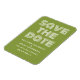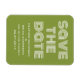 Retro Save the Date Magnet in olivgrün und weiß mit einem funky modernen typografischen Design. Diese trendige und stilvolle speichern Sie den Datums-Magnet ist einfach zu anpassen mit Ihren Hochzeitsdetails. Klicken Sie für weitere Anpassungsoptionen auf die Schaltfläche Anpassen.