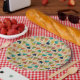 Retro Scandi Tulips Blumenmuster des Mitteljahrhun Pappteller