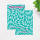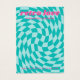 Die Schmuckkarte mit aquablau verdrehtem Schachbrettmuster und Ihrem Firmen- oder Designnamen im Retro-Stil, Himbeere heißen rosa Schriftart.