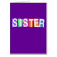 Retro-ähnlicher SCHWESTER-Entwurf mit weißem Text auf bunten Hintergrundquadraten. Text schafft unterschiedlichen Effekt auf Dunkelheits- oder Lichthintergründe. Ändern Sie die Art oder färben Sie, um dieses Ihre Selbst zu machen! Fügen Sie Text der Front oder der Rückseite hinzu. Dieses macht eine große Geschenkidee für Ihre Schwester an ihrem Geburtstag, am Abschluss oder an jedem anderen speziellen Tag.