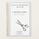 NewParkLane - Mit diesem eleganten, minimalen Terminbuch mit Retro-Paar und Scheren fügen Sie Ihrem Friseur eine Klasse und einen Stil hinzu. Mit einer stilvollen, minimalen Oberfläche von 2 grauen Rahmen und einer modernen Typografie-Textvorlage für Ihren Namen und Ihre Adresse. Alle Textstile, Farben und Größen können an Ihre Bedürfnisse angepasst werden. Ein ausgeklügeltes Design für jeden Haarstylisten! Karo diese Kollektion für passende Artikel wie Visitenkarten und Terminkarten aus. Haben Sie spezielle persönliche Designwünsche? Nehmen Sie Kontakt mit mir auf.