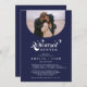Feiern wir die Probe unseres Lieblingspärchens vor dem großen Tag mit diesem klassischen und eleganten Retro Vintage Kalligraphie Probe Dinner Script in Weiß auf Marineblau mit einem gewölbten Foto oben. Wenn Retro auf moderne Touch trifft.