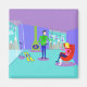 Brrr... Dieses Retro Ski Vacation Magnet wird Sie auf der Suche nach einem Heiligen Bernard mit einem Kasten von Brandy. Der moderne Cartoon zeichne Mitte des Jahrhunderts mit einem glamourösen Ehepaar, das in einem farbenfrohen Skihütte mit herrlicher Aussicht untergebracht ist. Der Boden ist türkisblau und die Wände lila. Hey, es ist der 60er! Der Boden zu den Deckenfenstern offenbart schneebedeckte Berge, einen türkisblauen Himmel mit hellblauen Wolken und die Silhouetten von glücklichen Menschen, die in den Skiliften von Gondeln herumwischen. Im Innern des Raumes sehen wir einen olivgrünen Kamin mit Kegel und einem glühenden Feuer. Auf dem Boden sind zwei gelbe Skier neben den Skistöcken geworfen. In der Mitte des Raumes trägt ein gut aussehender Mann mit schwarzem Haar eine blaue Hose und einen grünen Rollkragenpulli. Er trägt ein Tablett mit Martinis. Ein Arm ist ausgestreckt und bietet einer blonden Frau eine Martini an. Die Frau sitzt in einem roten Eizellstuhl. Sie trägt eine blaue Hose und einen heißen rosa Pullover. Bitte entschuldigen Sie, dass sie nicht aufsteht, aber sie hat ein Bein geworfen!