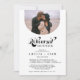 Feiern wir die Probe unseres Lieblingspärchens vor dem großen Tag mit diesem klassischen und eleganten Retro Vintage Kalligraphie Probe Dinner Script in Schwarz-Weiß mit einem gewölbten Foto an der Spitze. Wenn Retro auf moderne Touch trifft.
