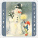 Retro Snowman and Elf Christmas Quadratischer Aufkleber