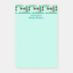 Dieses klebrige Notizblock weist ein Muster auf, das durch die Sommerzeit am Strand mit Sonnenbrillen im Retro-Stil und Surfbrettern in coolen Farben aquamarin und grün mit Orange inspiriert wird. Text ist leicht personalisiert.