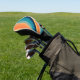geometrische Muster-Abbildung im Retrostil mit gelben, orangen, blauen und türkisfarbenen Streifen