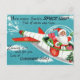 Diese schlanke Weihnachtspostkarte zeigt eine Vintage Illustration des Weihnachtsmanns, der in seinem Raumschiff Geschenke ausstellt. Die perfekte Fun-Karte für die Fans des Weihnachtsmannes und alles, was Retro!