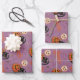 Retro Spooky Kitten Pumpkin Moons auf Lila Geschenkpapier Set