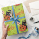 Retro Spooky Kitten Pumpkin Moons on Lime Green Geschenkpapier
