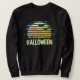 Bringen Sie mit diesem kühnen Halloween Mond Sweatshirt den frommen 70er zurück. Mit einem Mond mit Retrostreifen in Kürbisorange, mit fliegenden Fledermäusen, ist es die perfekte Mischung aus Vintag und spukhaft. Ideal für Halloween-Partys, Trick oder Behandlungen oder gemütliche Herbstabende.
