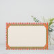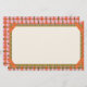 Bright orange striped faux washi tape adorns the corners of this bright and colorful multi pattern design with hand drawn grid and plaid patterns in orange, pink and green, bordering a spacious cream writing paper.