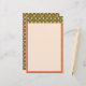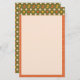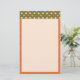 This bright and fun tablet style mixed pattern design features two retro hand drawn patterns, one a fun and funky vermilion and white stripe, and the other a dainty yellow, vermilion, cream, and green floral bordering a spacious cream writing space.