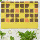 Retro Squares Yellow Brown Custom Family Name Geschirrtuch