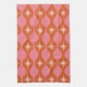 Das ist ein elegantes, modernes Muster der atomaren Sternexplosion aus der Mitte des Jahrhunderts, das auf den orangefarbenen Ogeen-Formen in rosa Untergrund platziert ist. Es ist großartig aussehendes Küchentuch für Frauen, die Liebe Retro entwirft