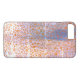 Retro-Papier Apple iPhone 8 Plus/7 Plus, kaum da. Kleine goldene Kreise auf einem hellblauen Aquarellhintergrund, die das sonnenverblasste Papier imitieren.