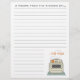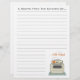 Rezept Papier mit optionalen Linien, die entfernt werden können. Unten zeigt eine Abbildung eines inspirierten Retro-Ofens mit einem orangefarbenen Topf auf dem vorderen links Brenner. Der obere Text lautet "Rezept aus der Küche ..." Personalisieren Sie mit Ihrem Namen oben Herd unten. Suchen Sie nach dem passenden Rezeptbinder (unten).